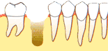 | 1 | 奥歯が一本抜けてしまった状態です。従来はブリッジや入れ歯で治療していましたが、それでは残っている歯に負担がかかったり、傷付けたりしてしまいます。 | ![]() |